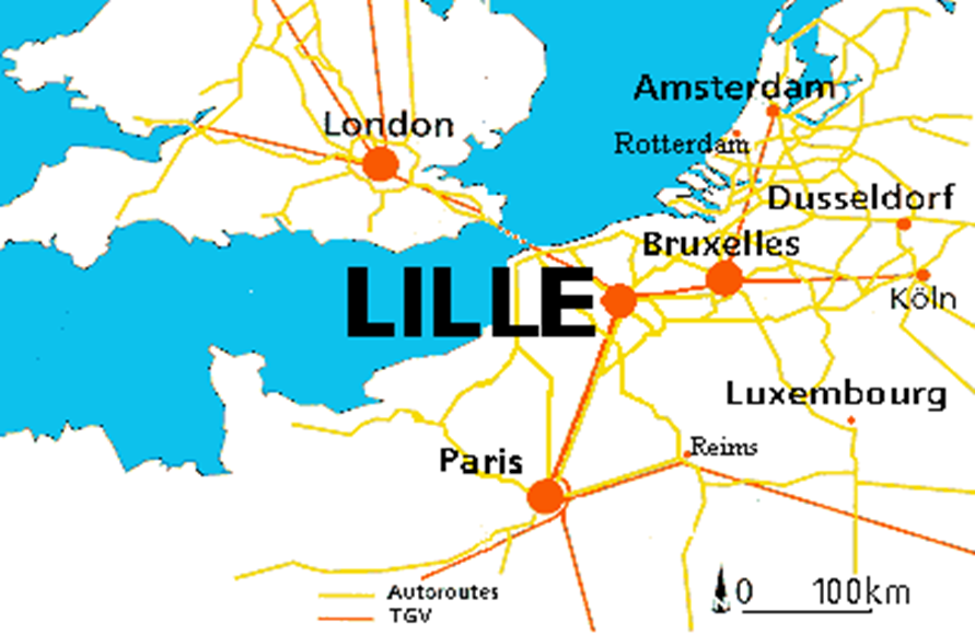 2. Take TGV to Lille (conference Venue). (The TGV is France's intercity high-speed rail service.)